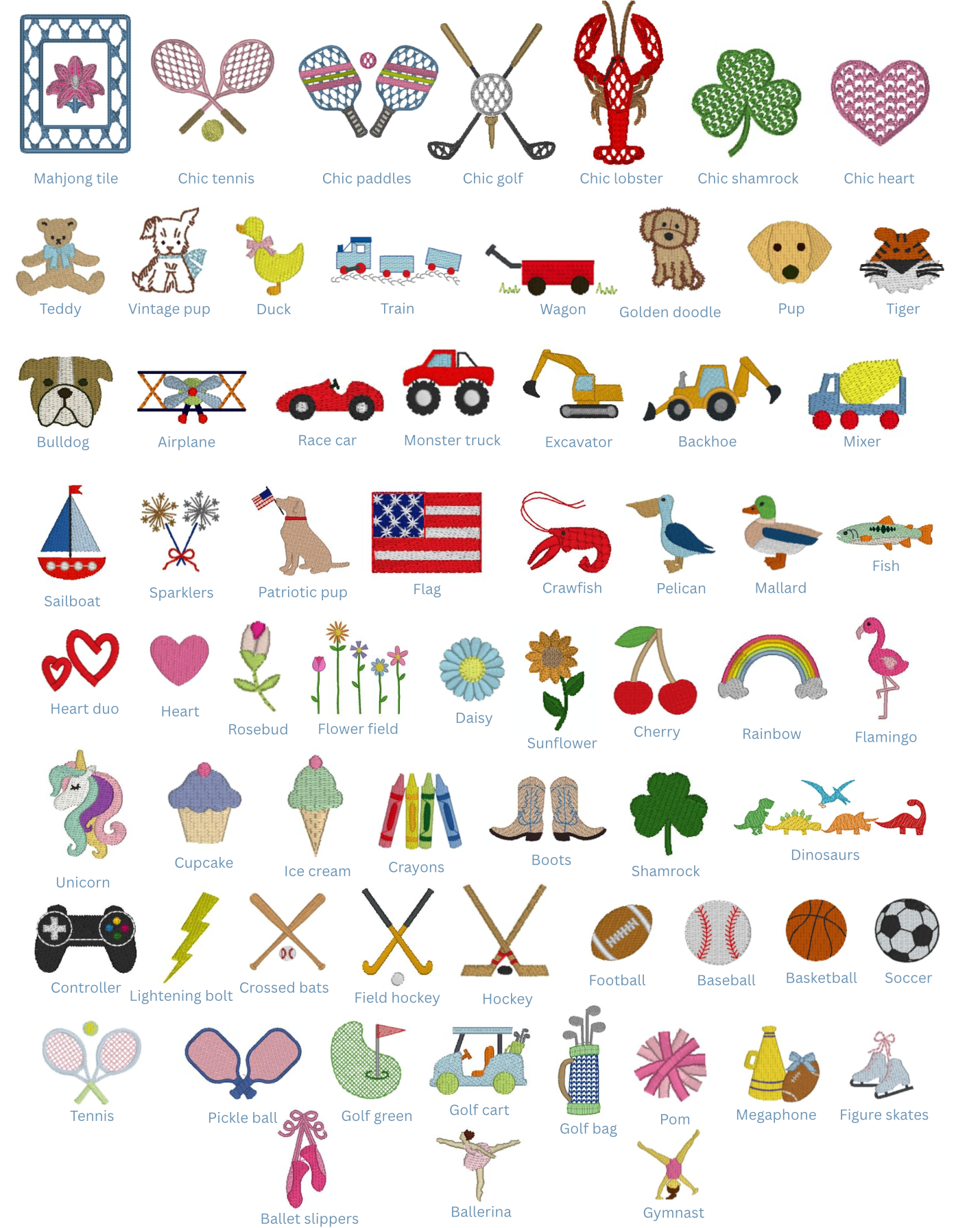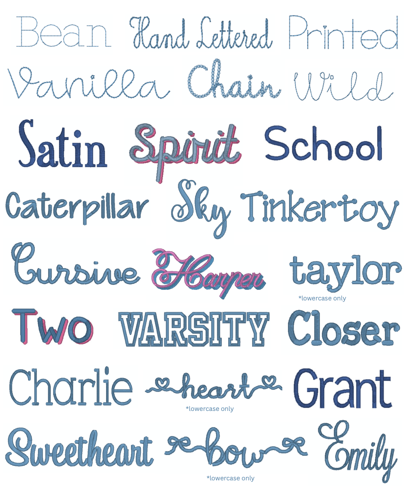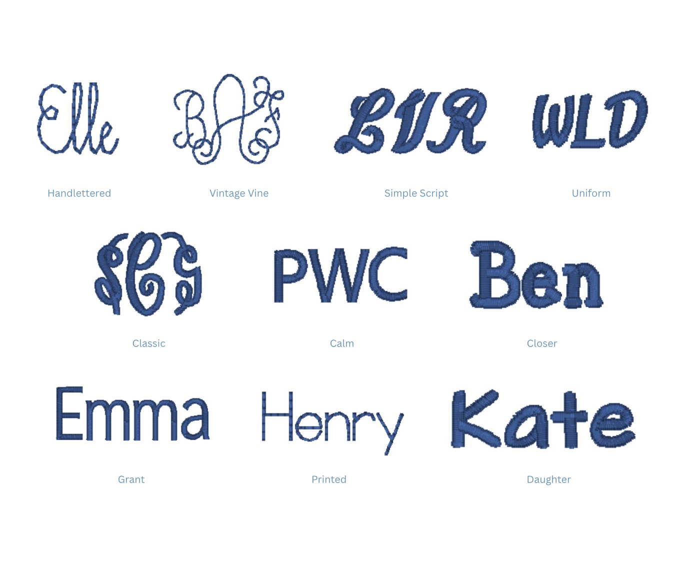 Maybe some help deciding? I've spent 9+ years playing around with all the combos. If you'd like recommendations, mention "Aim's choice" and any important details (e.g. dad plays golf, family loves dogs, for the 3rd child, mom is an earthy tone kinda person) in the personalization box when you order.