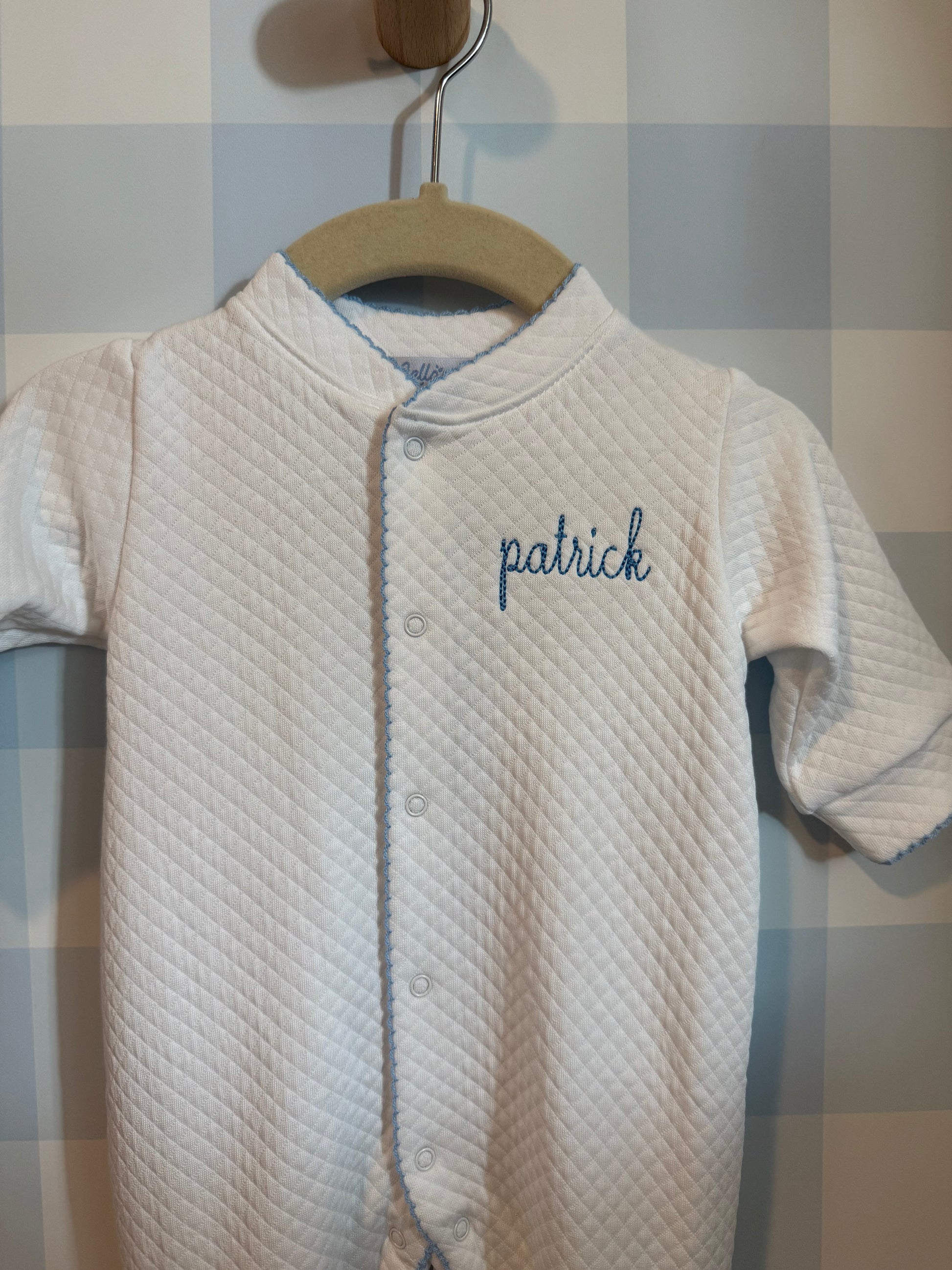 Prices include personalization with name or letters. Want to add an additional design (e.g. puppy, golf cart, flowers)? Add the Additional Design Add-On to your cart. See Embroidery Guide for options then add details below.