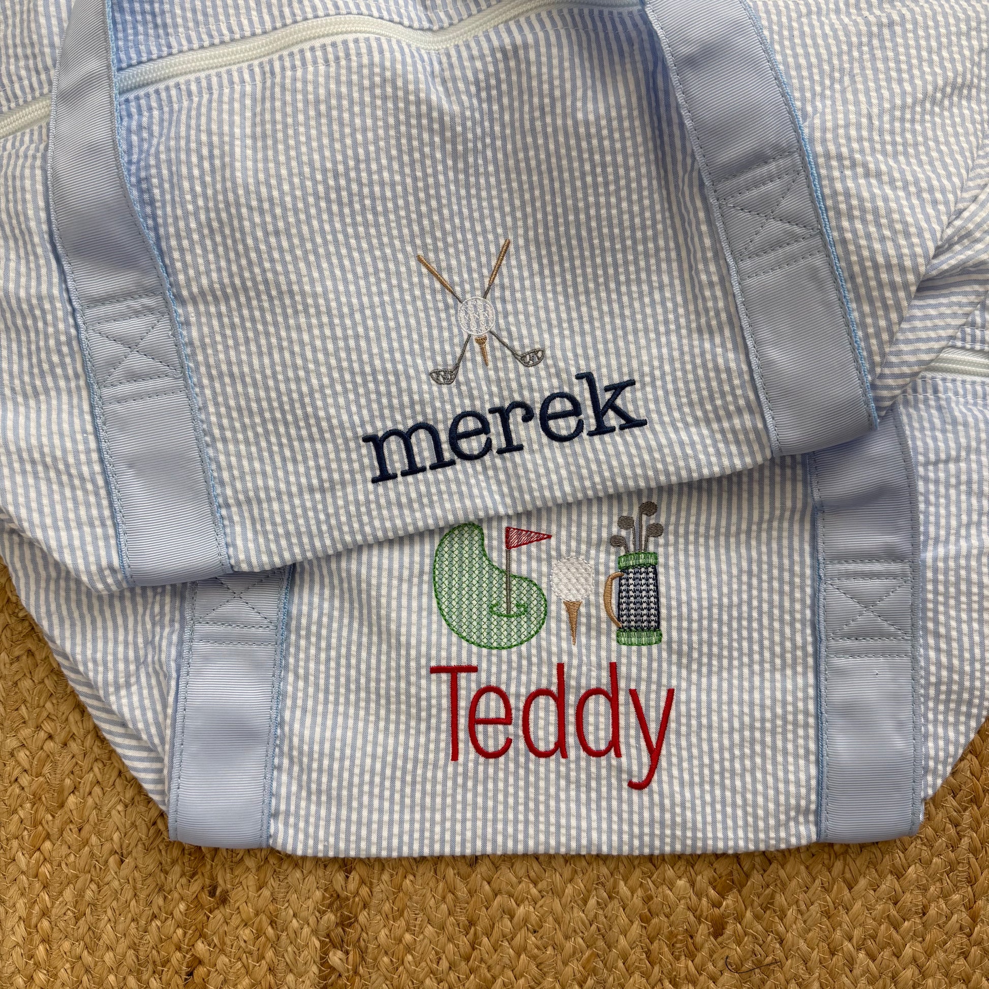 Prices include personalization with name or letters. Want to add an additional design (e.g. puppy, golf cart, flowers)? Add the Additional Design Add-On to your cart. See Embroidery Guide for options then add details below.