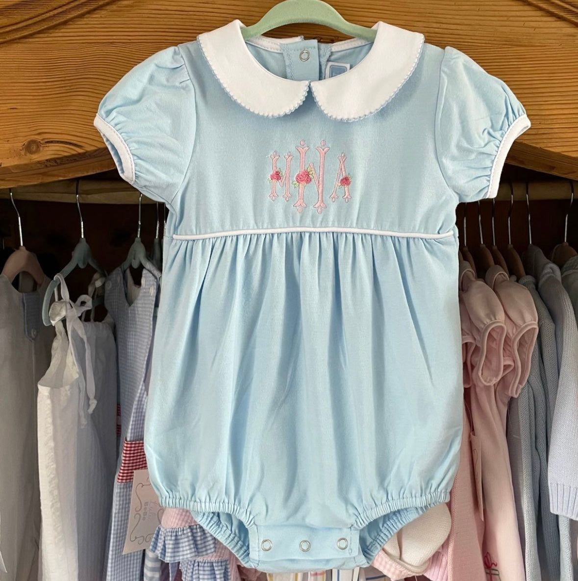 A classic everyday cotton piece that can be personalized daintily on the collar or larger across the chest.