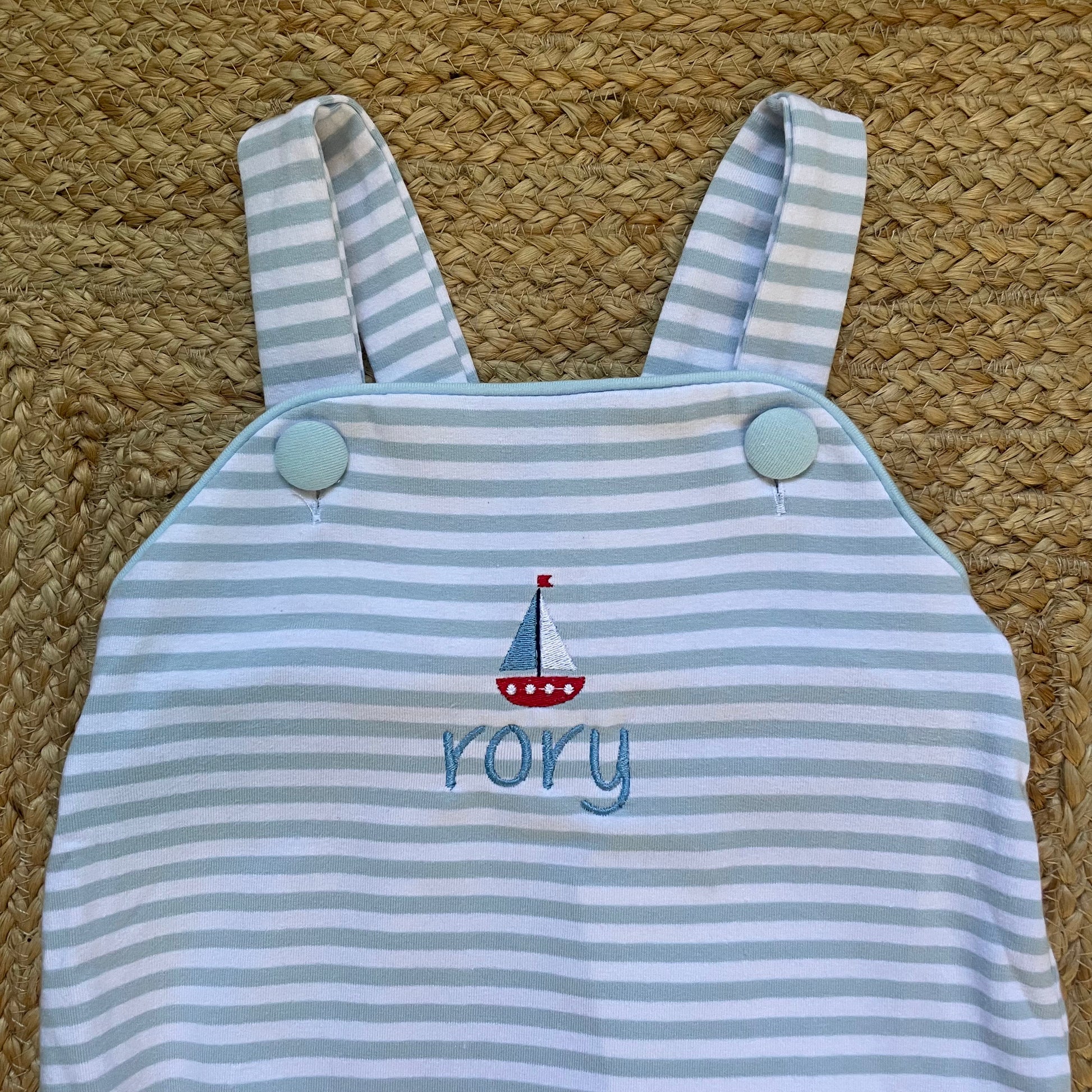 Light striped cotton sunsuit for those warm days! Cute with a monogram or add a design like a sailboat or stars for Independence Day!