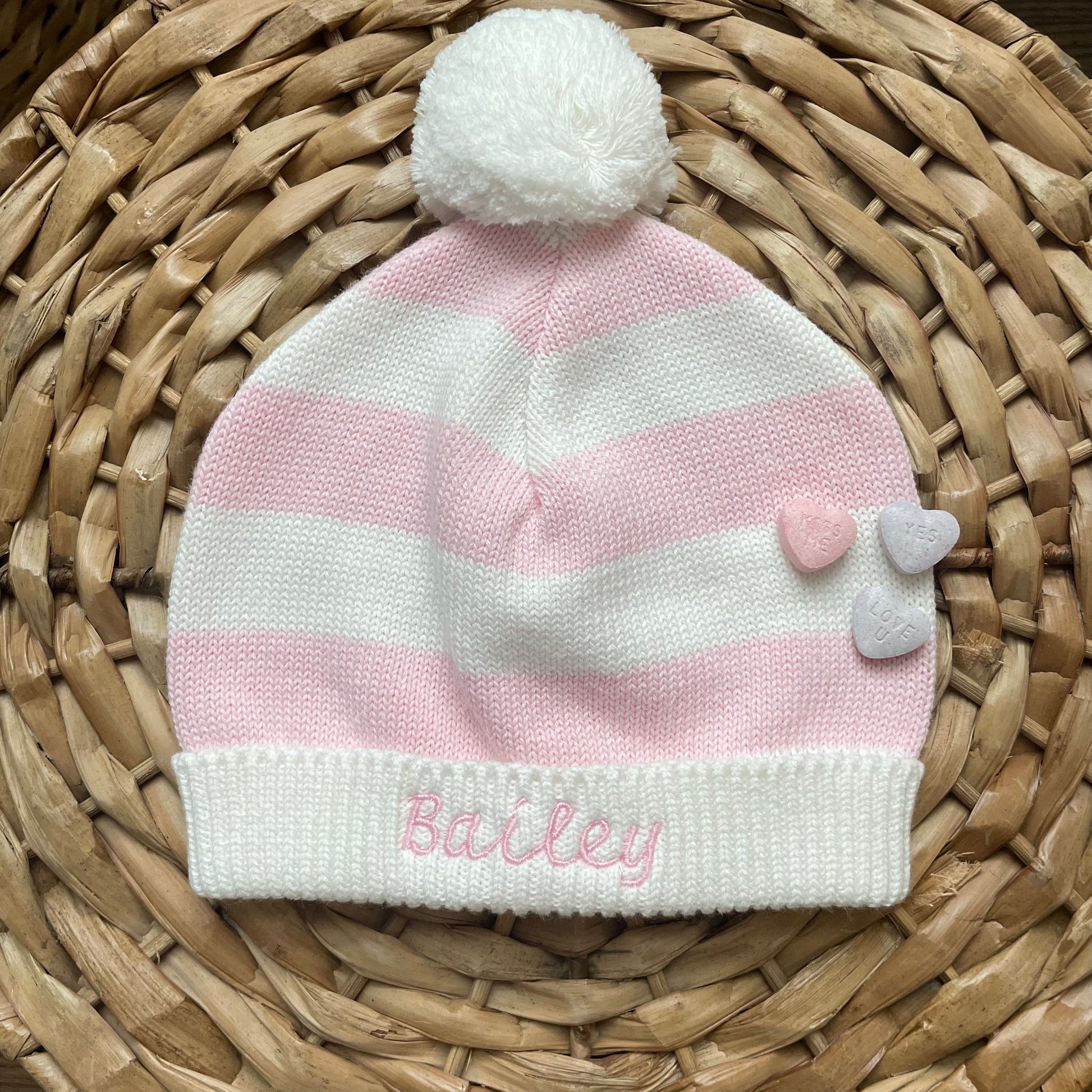 This knit hat with a pompom is a wonderful accessory for any outfit!