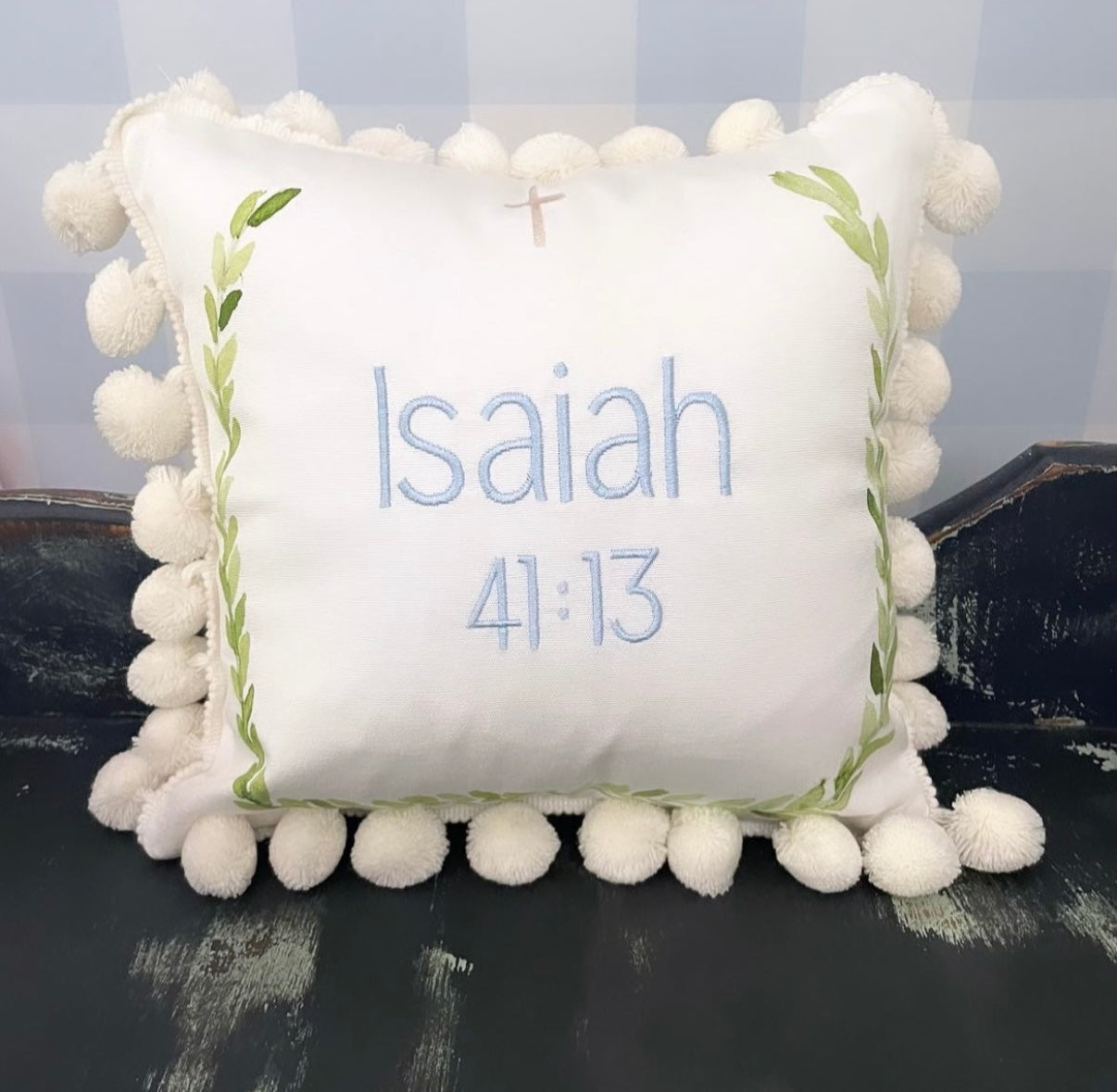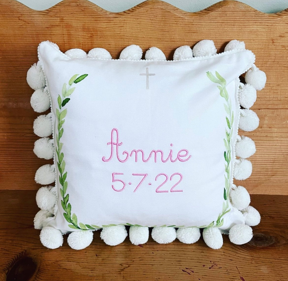 Laurel wreath mini pom pom pillow