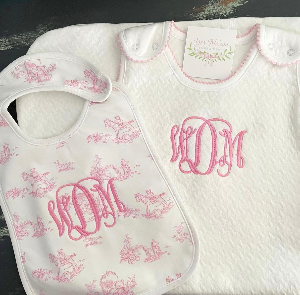 Prices include personalization with name or letters. Want to add an additional design (e.g. puppy, golf cart, flowers)? Add the Additional Design Add-On to your cart. See Embroidery Guide for options then add details below.